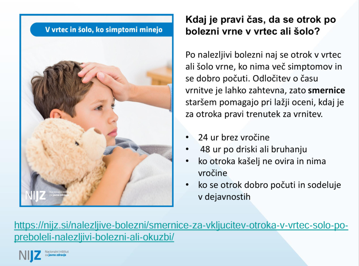 Smernice za vrnitev otrok po bolezni v šolo ali vrtec - (NIJZ)